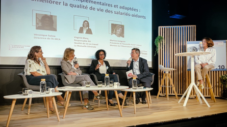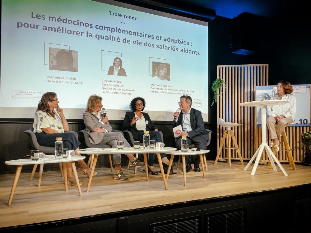 Retrouvez ci-contre l’intégralité de la table ronde sur « Les médecines complémentaires et adaptées pour améliorer la qualité de vie des salariés-aidants » avec Martine Aulagnier, Passerelle Assist’aidant, Véronique Suissa, A-MCA et Virginie Mary, La Mutuelle Générale.